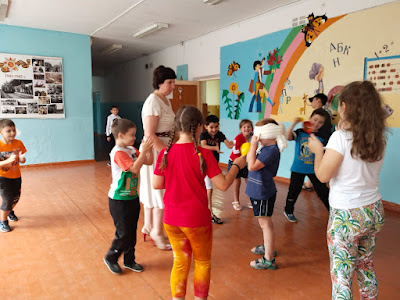 Ребята поиграли в татарскую народную игру «Маляр и краски», в игру народов севера «Рыбалка», в осетинскую народную игру «Слепой медведь», в башкирскую народную игру «Стрелок» и в русскую народную игру «Курочки и петушки».